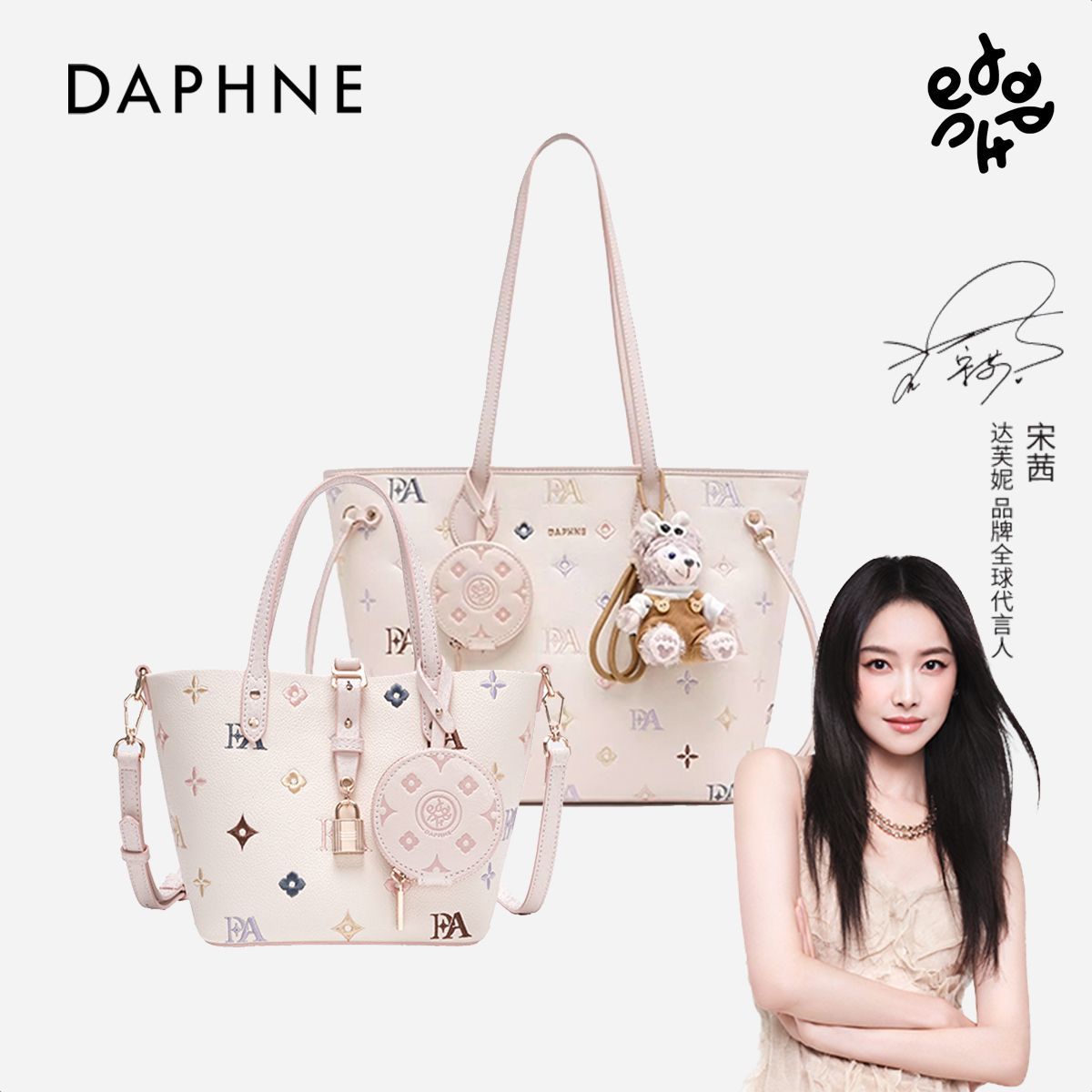 达芙妮2025新款 通勤大容量托特包甜美单肩斜跨菜篮子包 包包女时尚