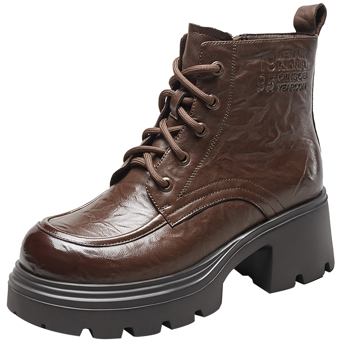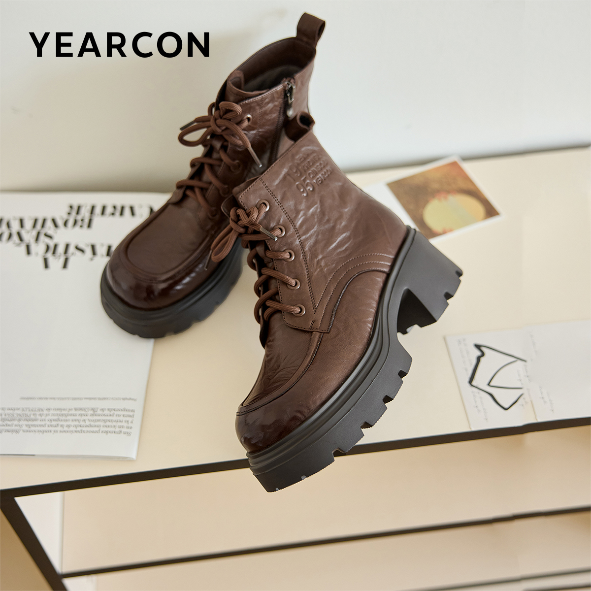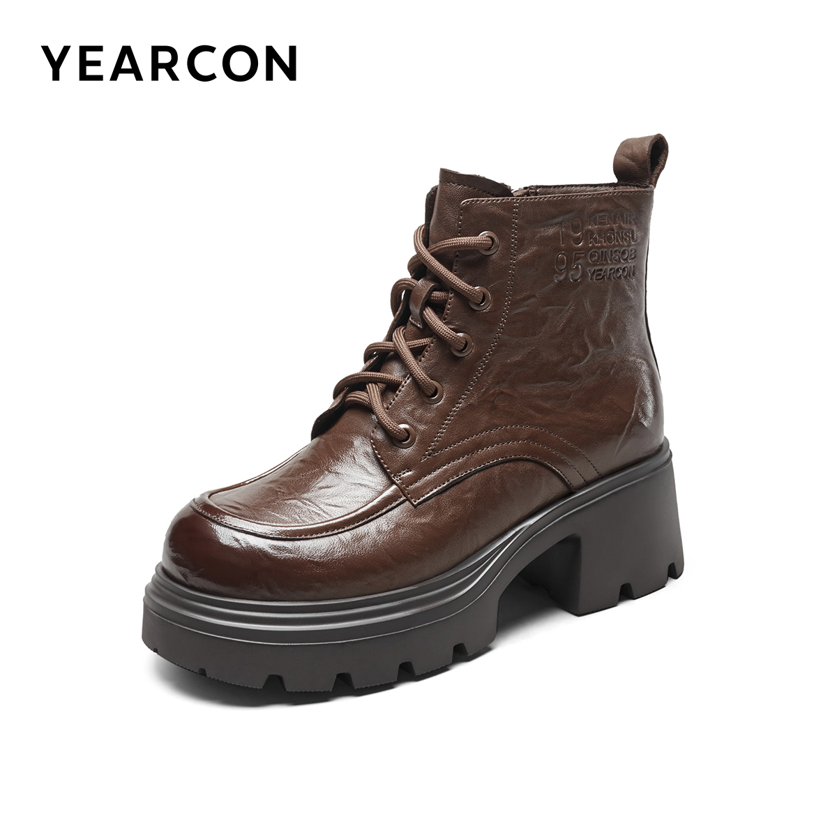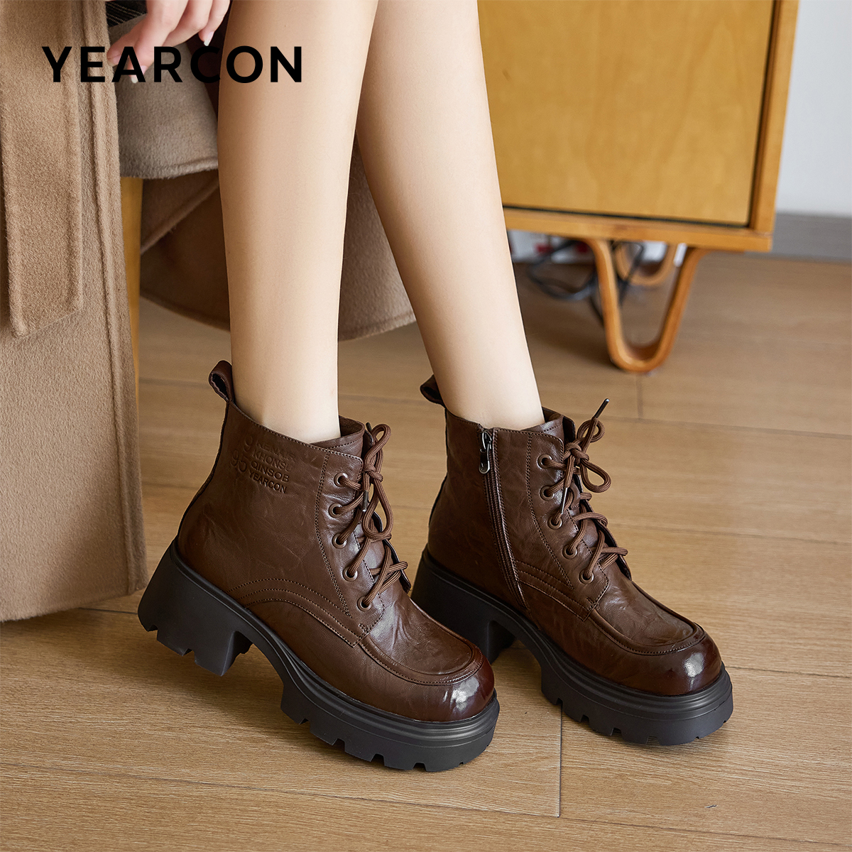 复古真皮休闲加绒马丁靴粗跟英伦短靴厚底 皮鞋 意尔康女鞋 2025冬季