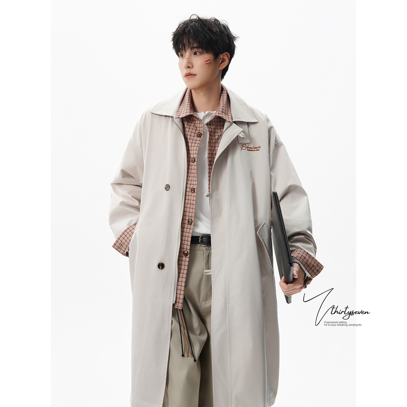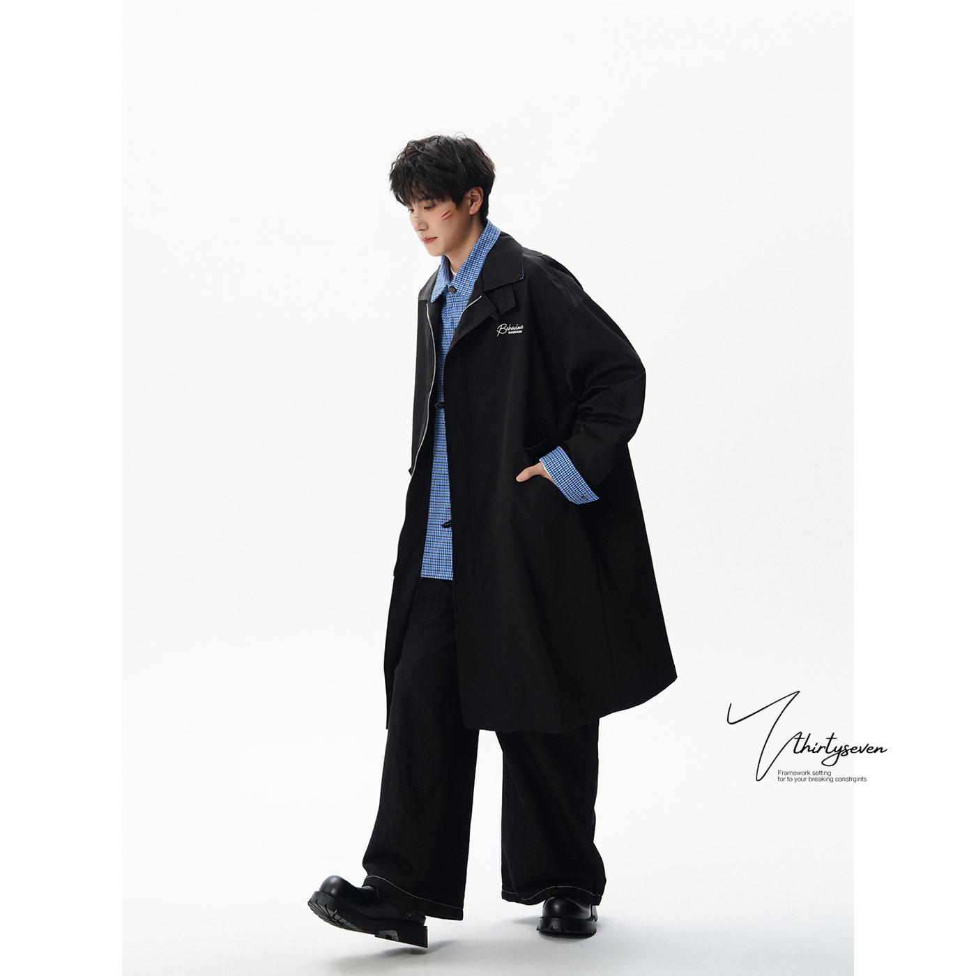 韩版 长款 呢子加厚风衣外套 2025春秋季 V37黑色高级感毛呢大衣男款