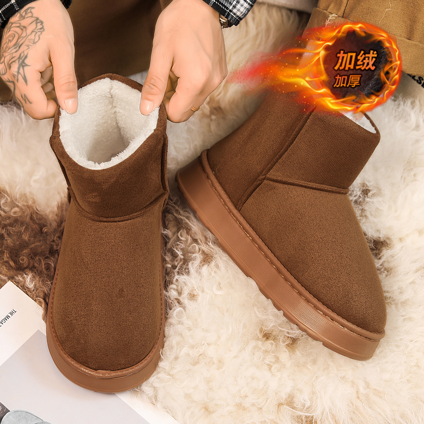 加绒加厚户外保暖抗寒防滑防水皮毛一体面包大棉鞋 雪地靴男鞋 冬季