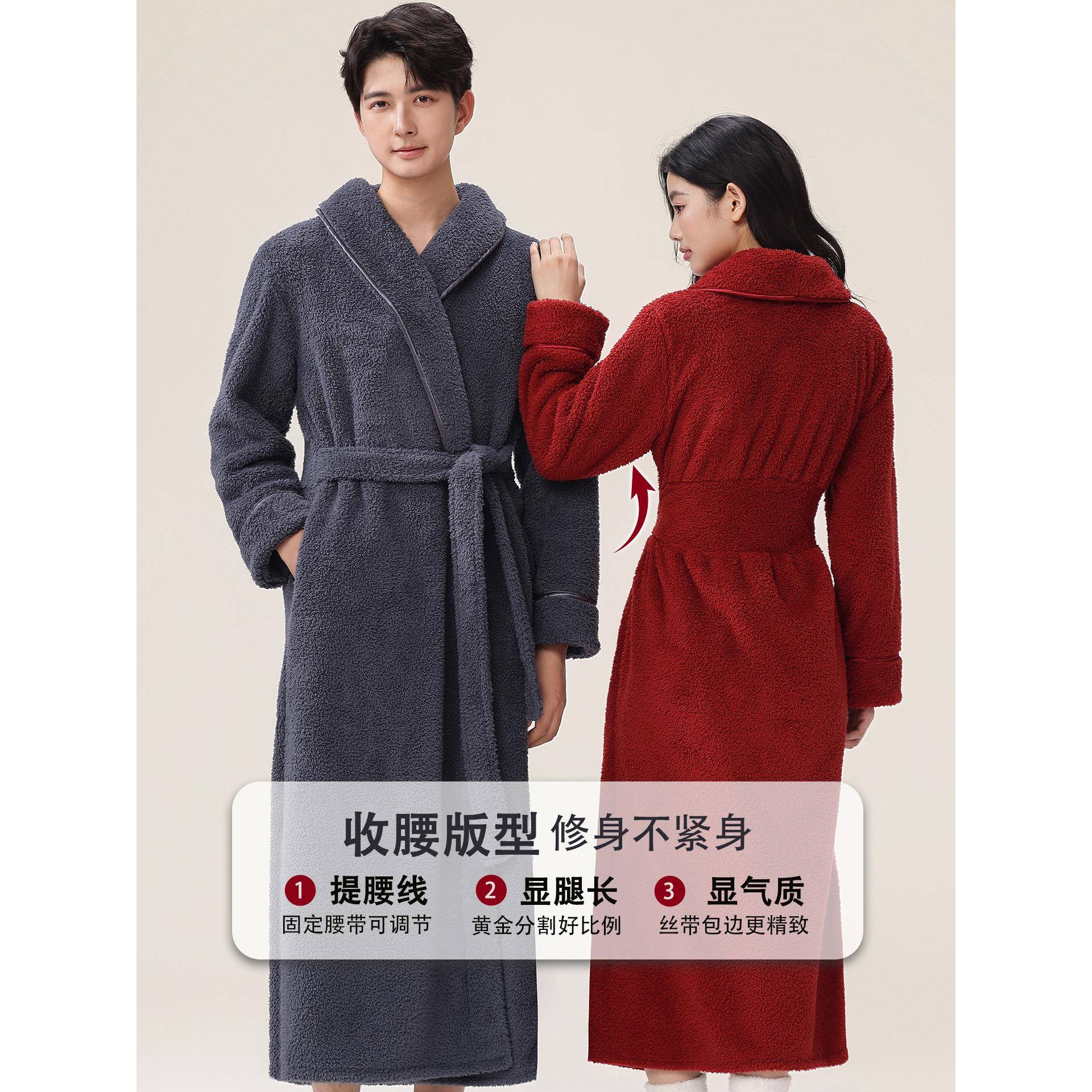加长加1009c 珊瑚绒浴袍男士 秋冬2025新款 秋冬女睡袍情侣睡衣套装
