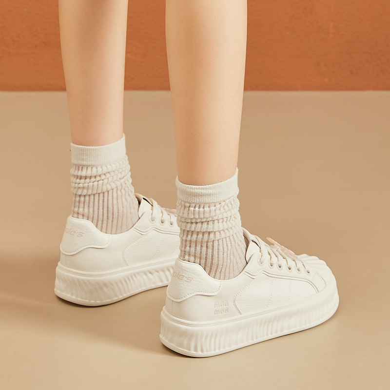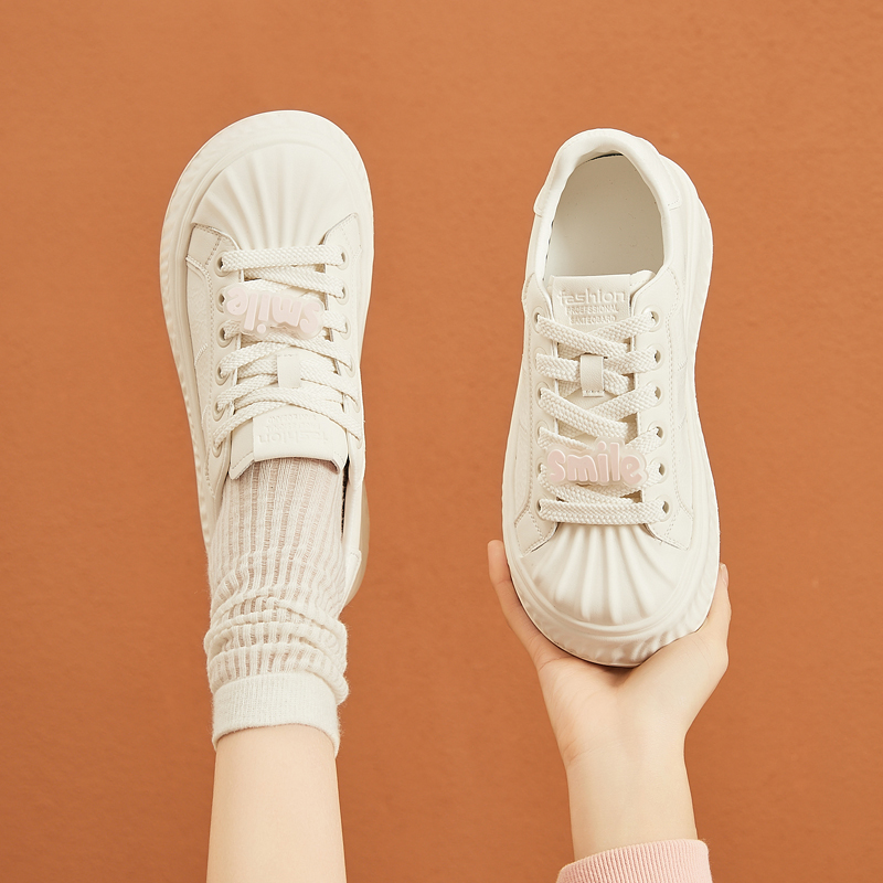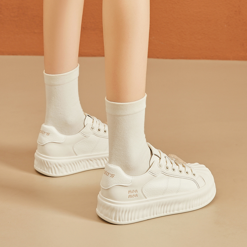 平底休闲贝壳头小白鞋 增高6cm8百搭舒适轻便透气 女厚底2025秋季
