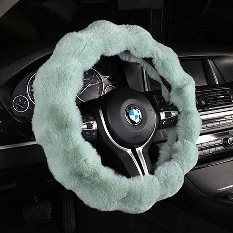 兔毛绒汽车方向盘套冬季 三件套防滑透气短毛把套通用保暖汽车把套