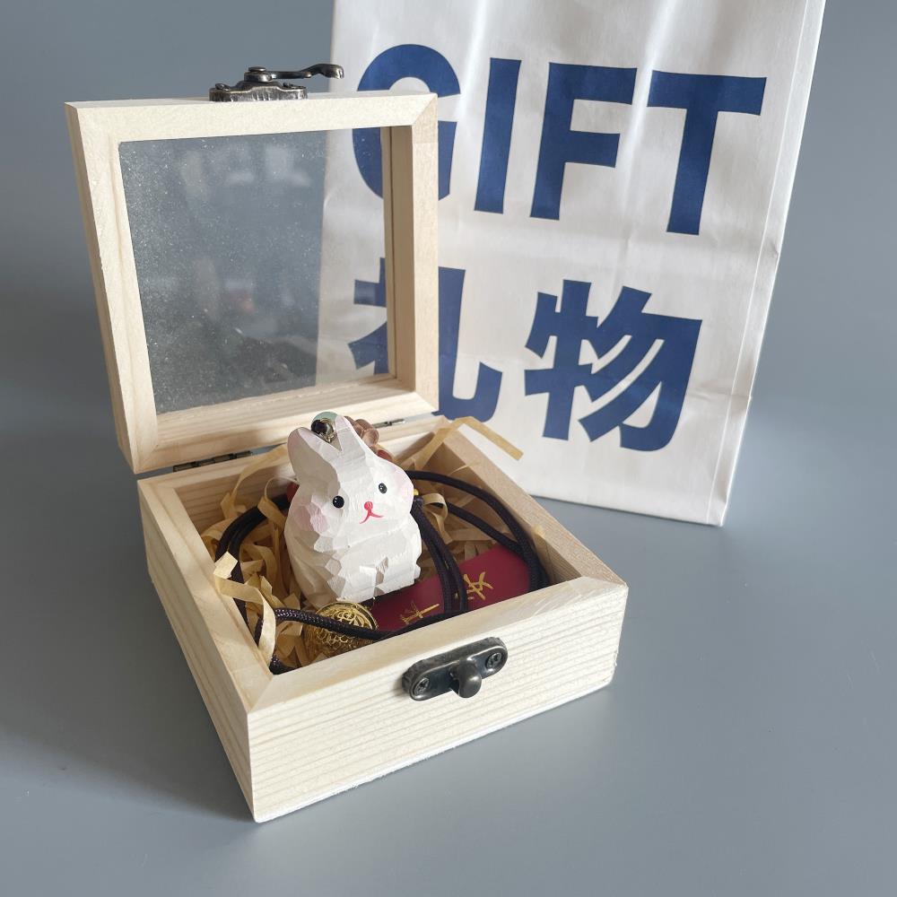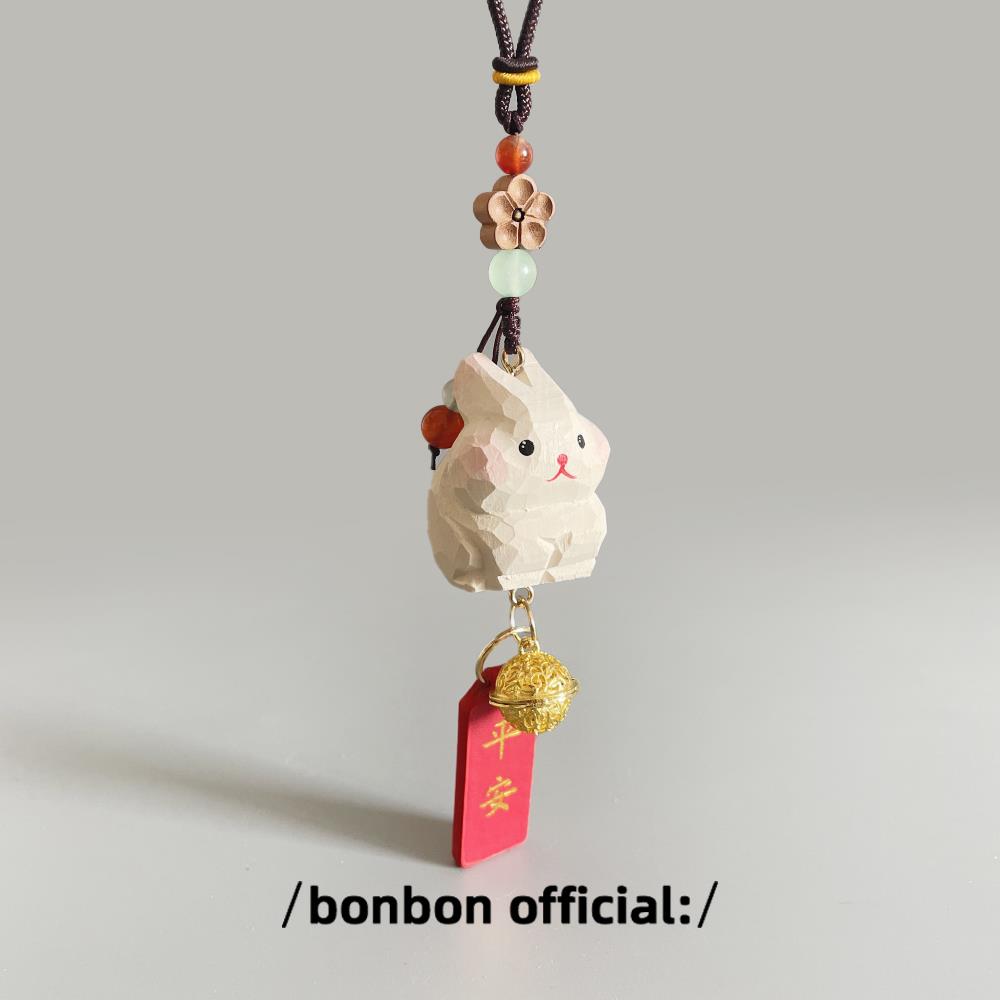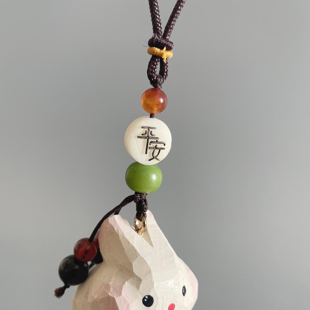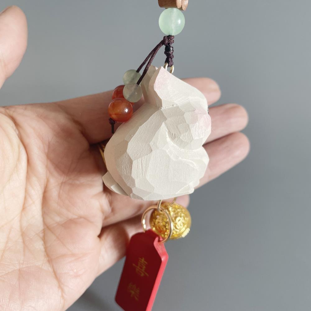 手工木雕小白兔车挂汽车后视镜挂件装 饰挂饰创意可爱治愈新车礼物