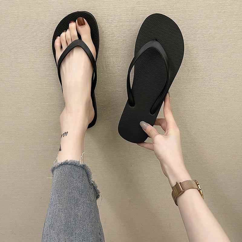 韩式 夏季 黑色人字拖女式 女式 外套防滑平底跟沙 人字拖凉鞋 2024新款