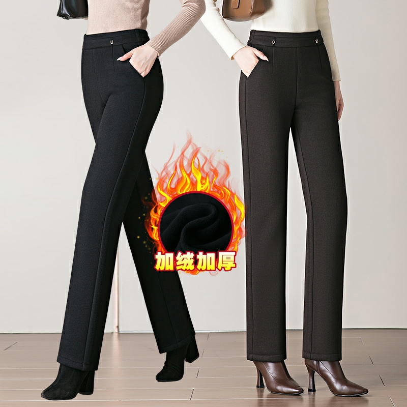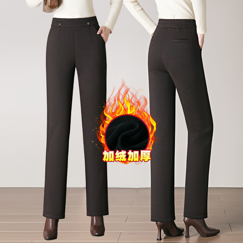 高腰显瘦直筒休闲中老年长裤 毛呢妈妈裤 子女秋冬加绒加厚2025新款