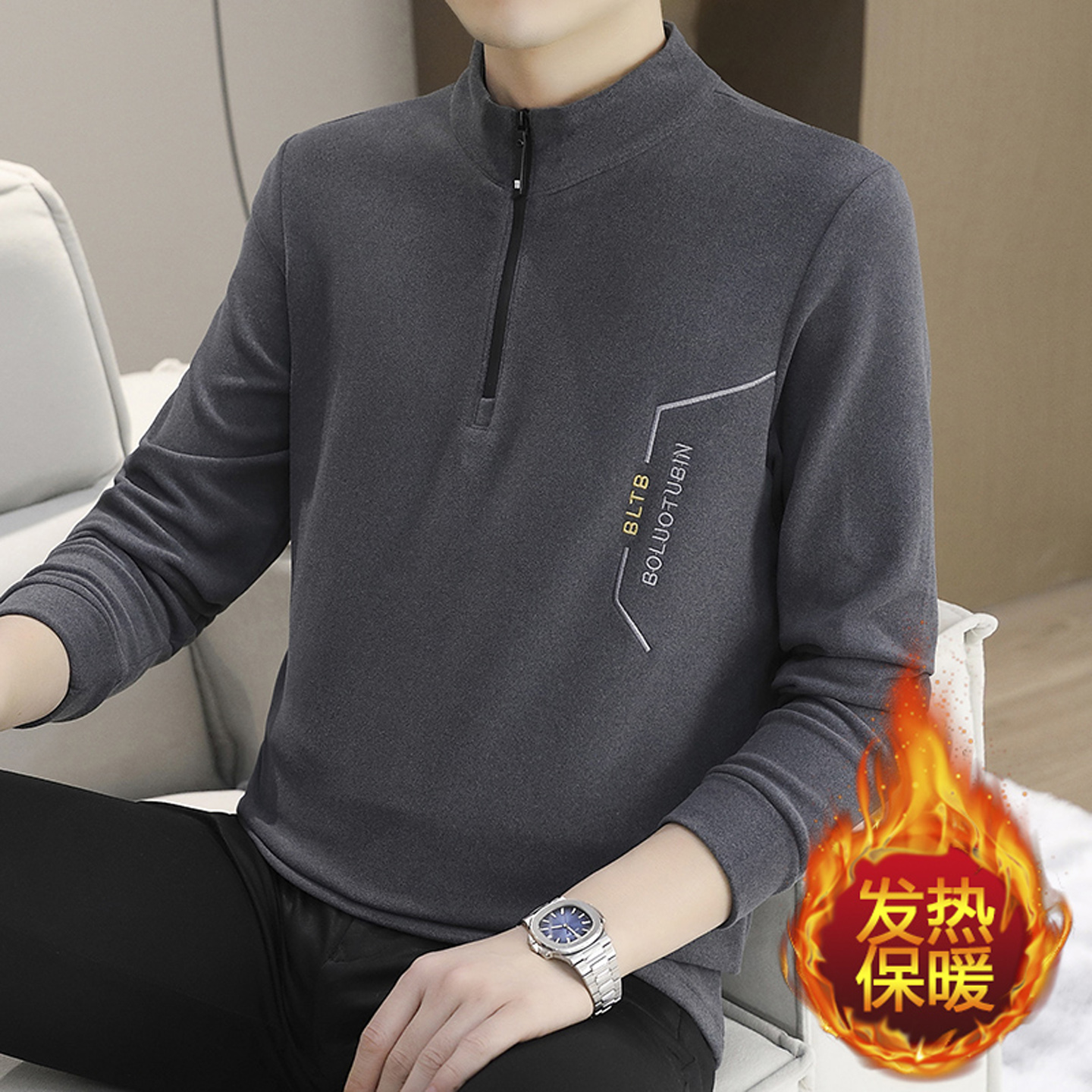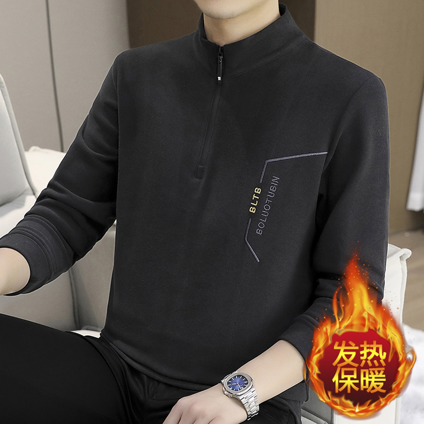 t恤 内搭秋冬半拉链立领秋衣上衣外穿加绒加厚长袖 德绒打底衫 男款