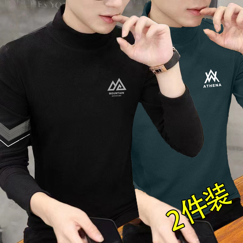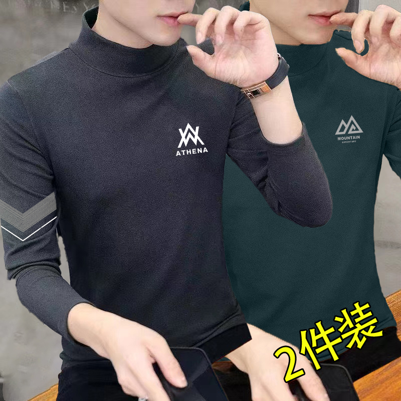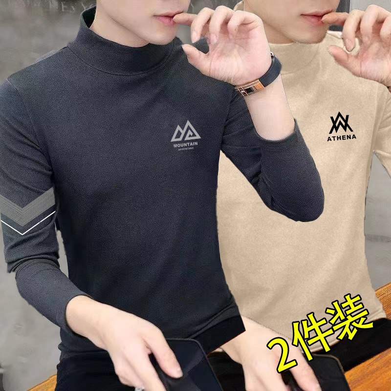 长袖 男士 半高领双面德绒打底衫 t恤上衣服潮牌男内搭 发货快