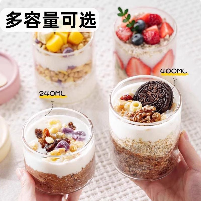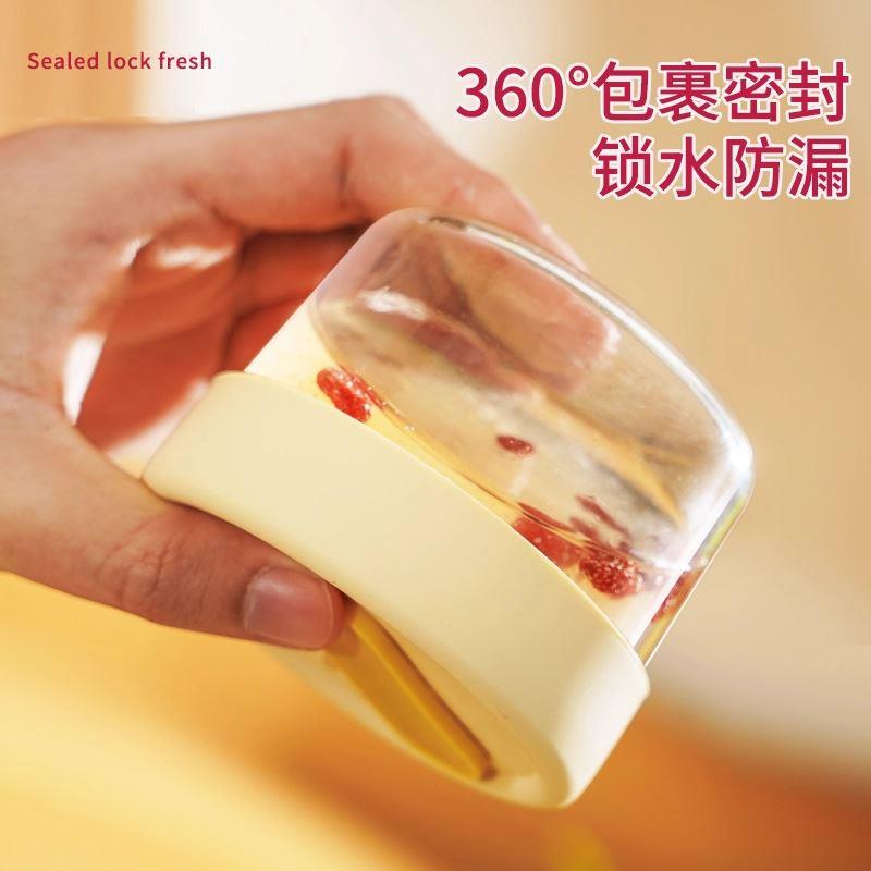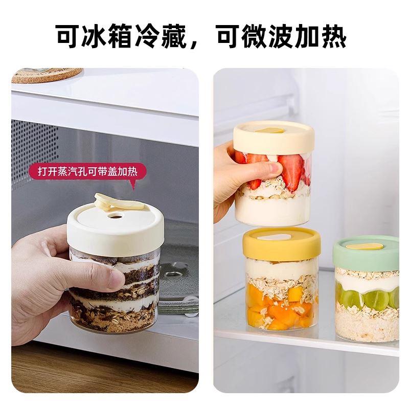 隔夜燕麦杯玻璃早餐杯便携式 带盖可微波炉加热水果沙拉碗汤酸奶杯