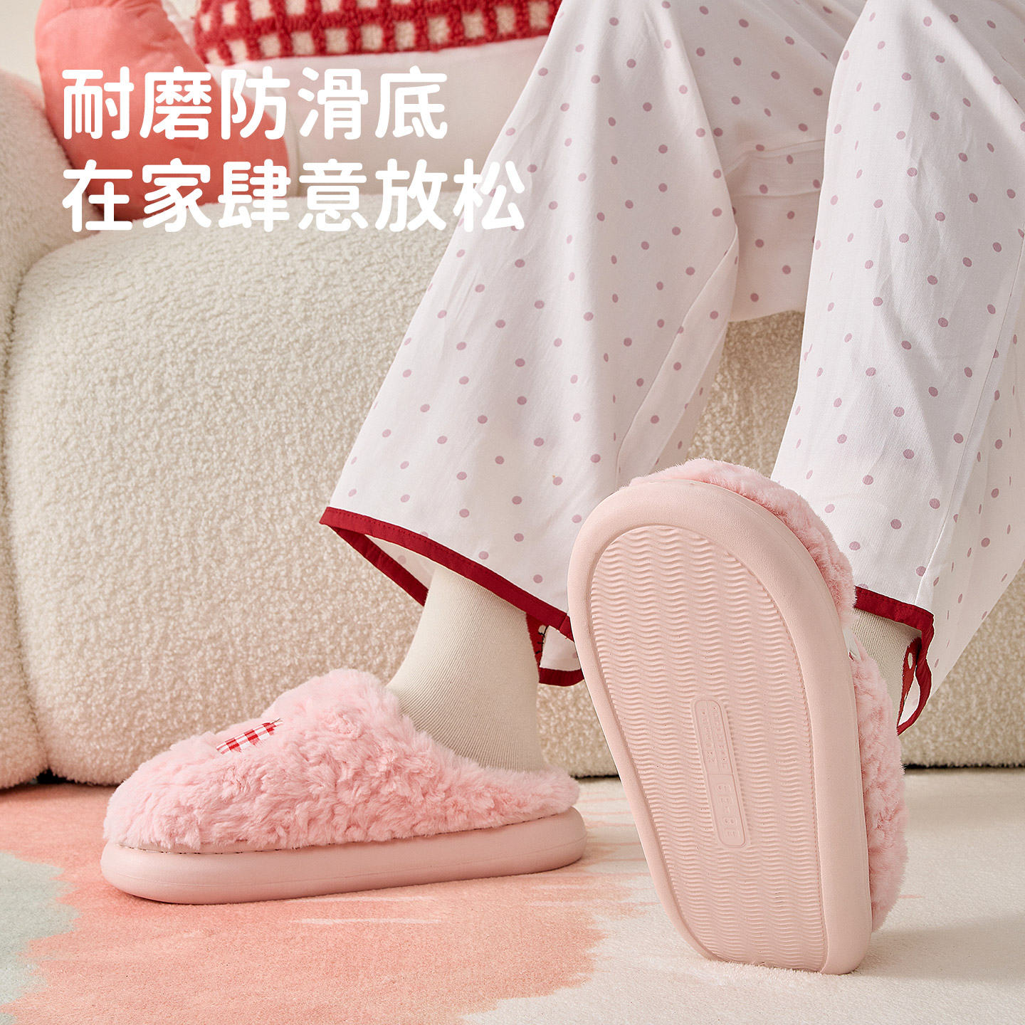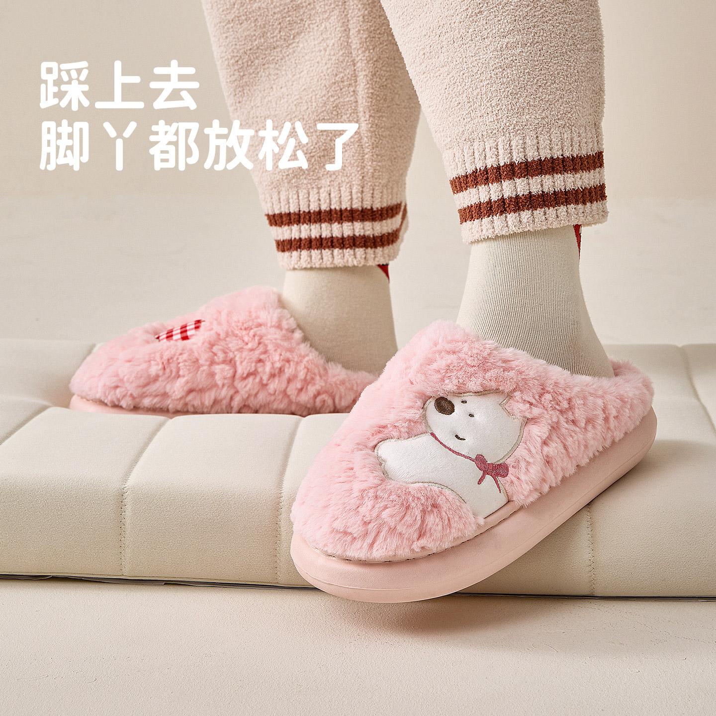 室内家居防滑加绒可爱毛毛拖鞋 2025新款 男 女冬季 洁丽雅抗菌棉拖鞋