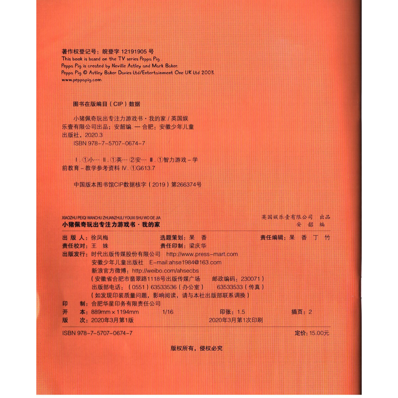 家英国娱乐壹有限公司出品 社新华书店正版 安韶编益智游戏 玩具书安徽少年儿童出版 立体翻翻书 小猪佩奇玩出专注力游戏书:我