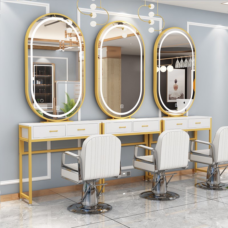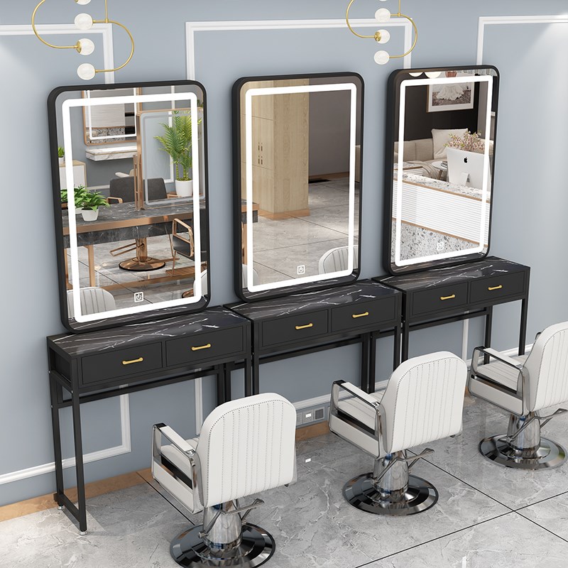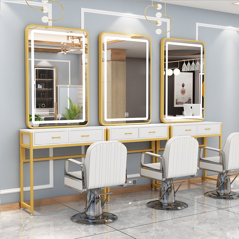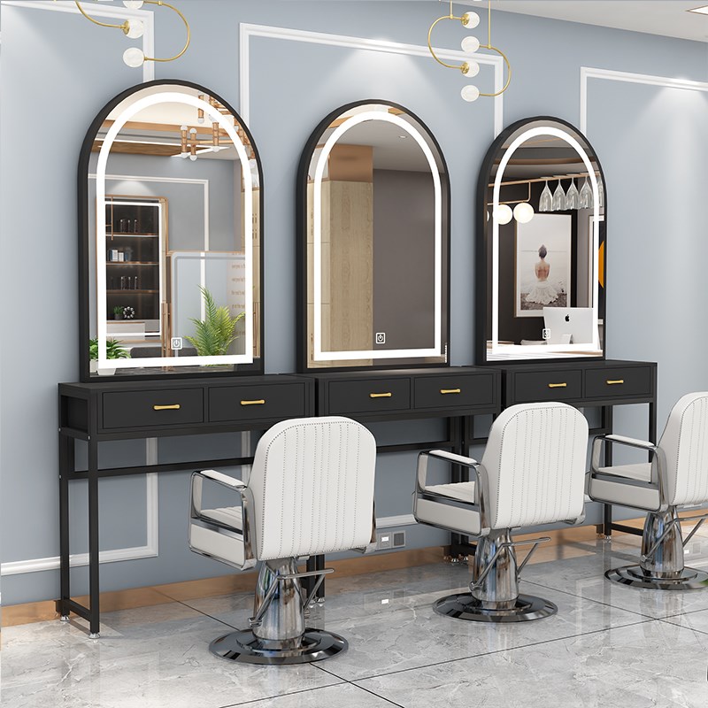 理发店镜台带灯发廊专用带柜子一体网红烫染桌美发店剪发美容镜子