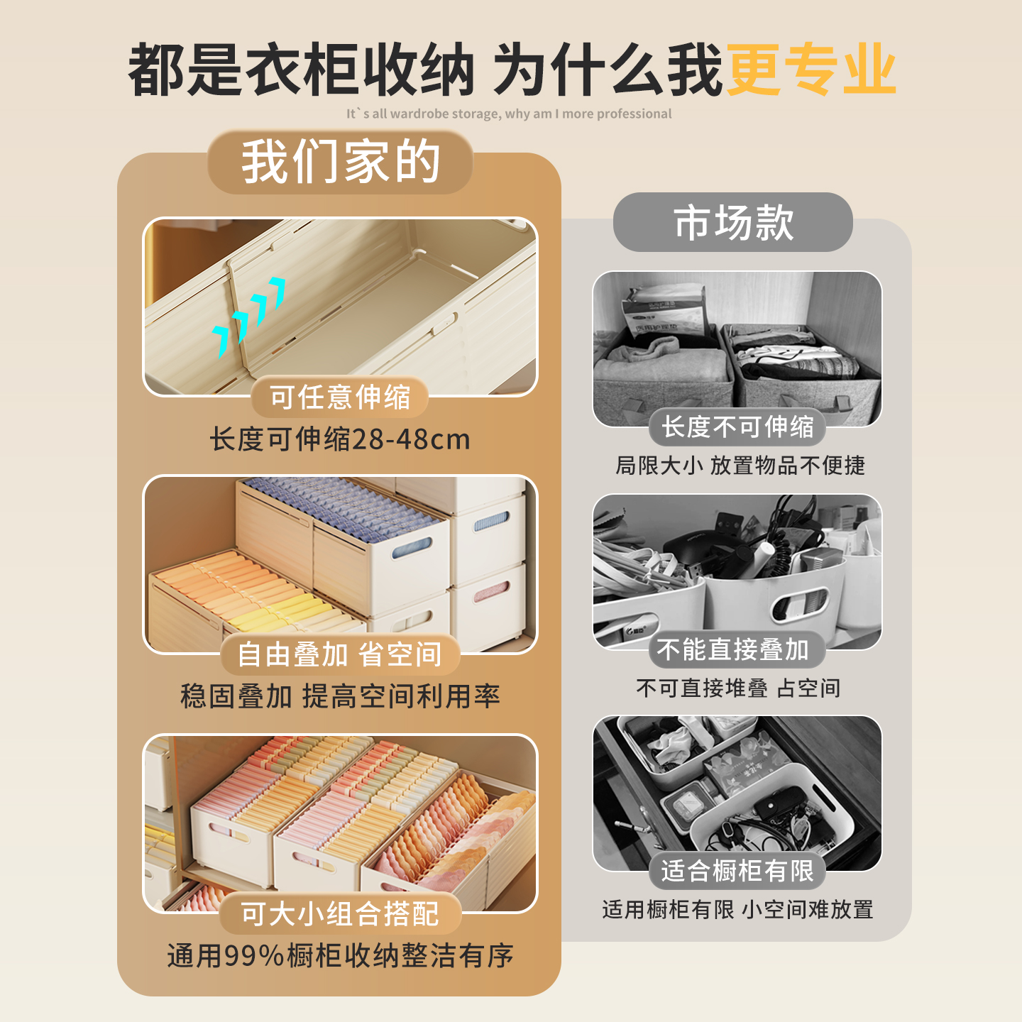 内衣收纳盒袜子内裤 子衣物箱家用衣柜三合一收纳神器 伸缩整理盒裤