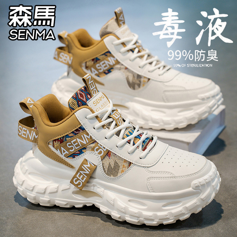 老爹鞋 皮面防水运动休闲跑步厚底内增高网红爆款 秋季 森马高帮男鞋