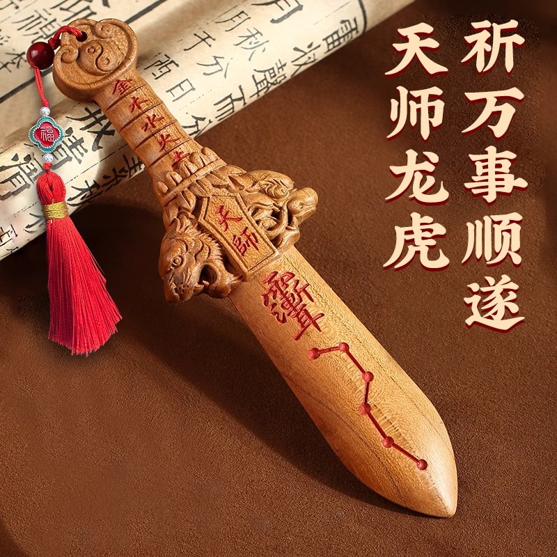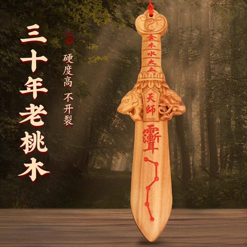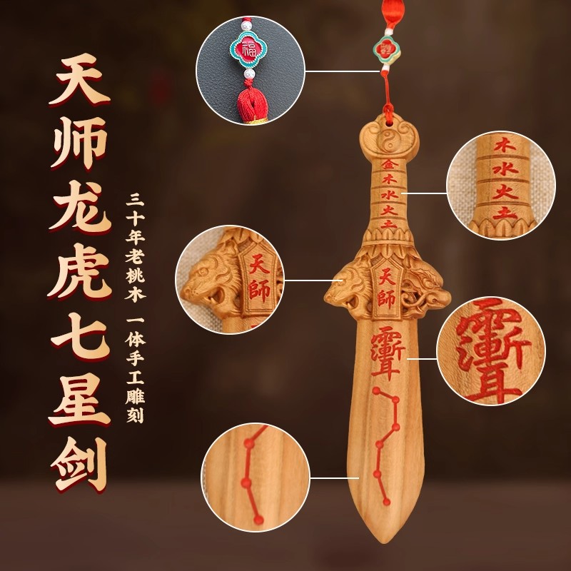 挂窗户用桃木剑小挂件天师龙虎剑平安紫微讳成人七星剑手工桃木