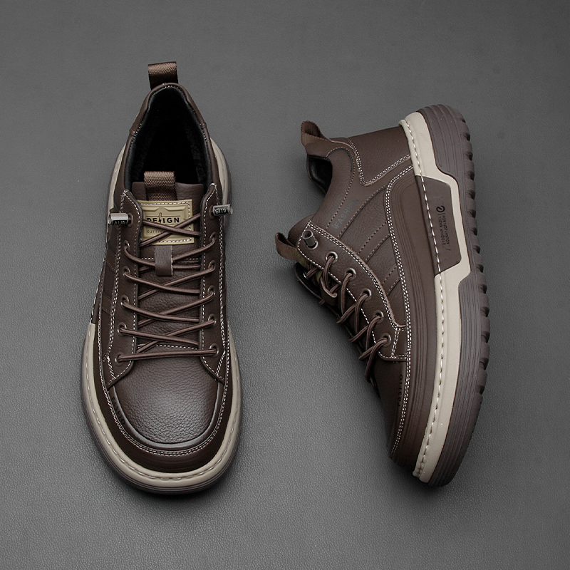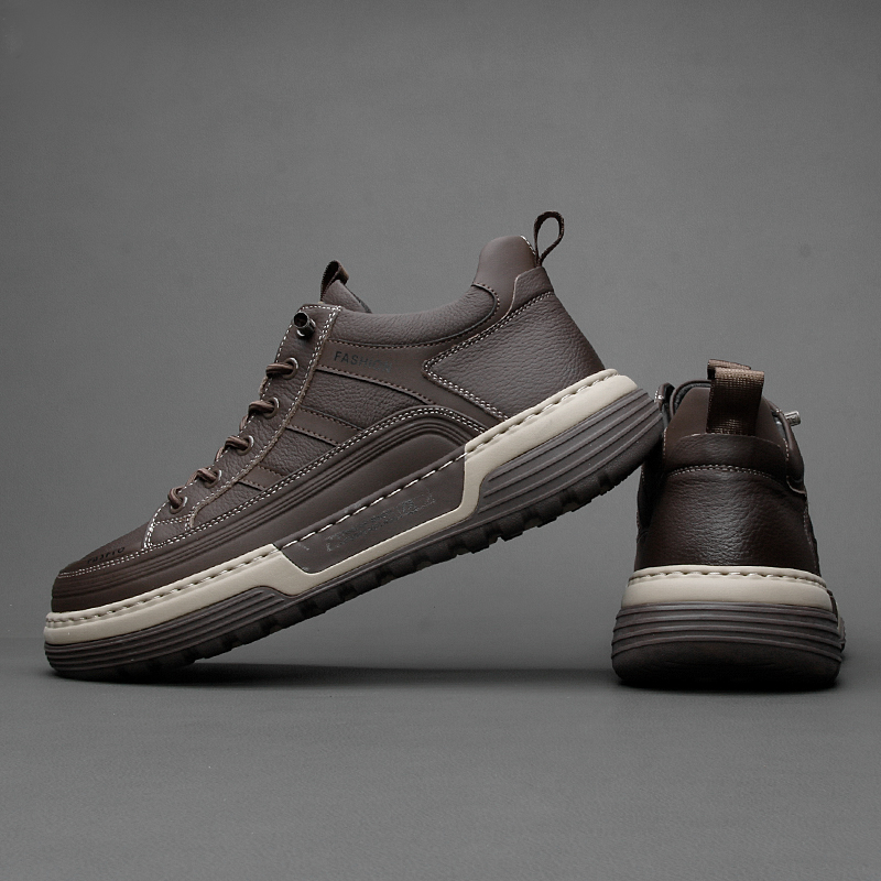 运动鞋 高帮休闲鞋 秋冬新款 子学生厚底男鞋 皮面鞋 征服鸿星尔克板鞋