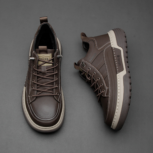 靴子 真皮防水厚底增高工装 森马马丁靴男秋季 高帮百搭休闲白色板鞋