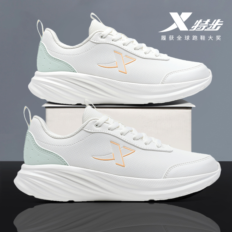 休闲鞋 特步女鞋 初中生软底轻便跑步鞋 皮面运动鞋 女 官方旗舰店秋季