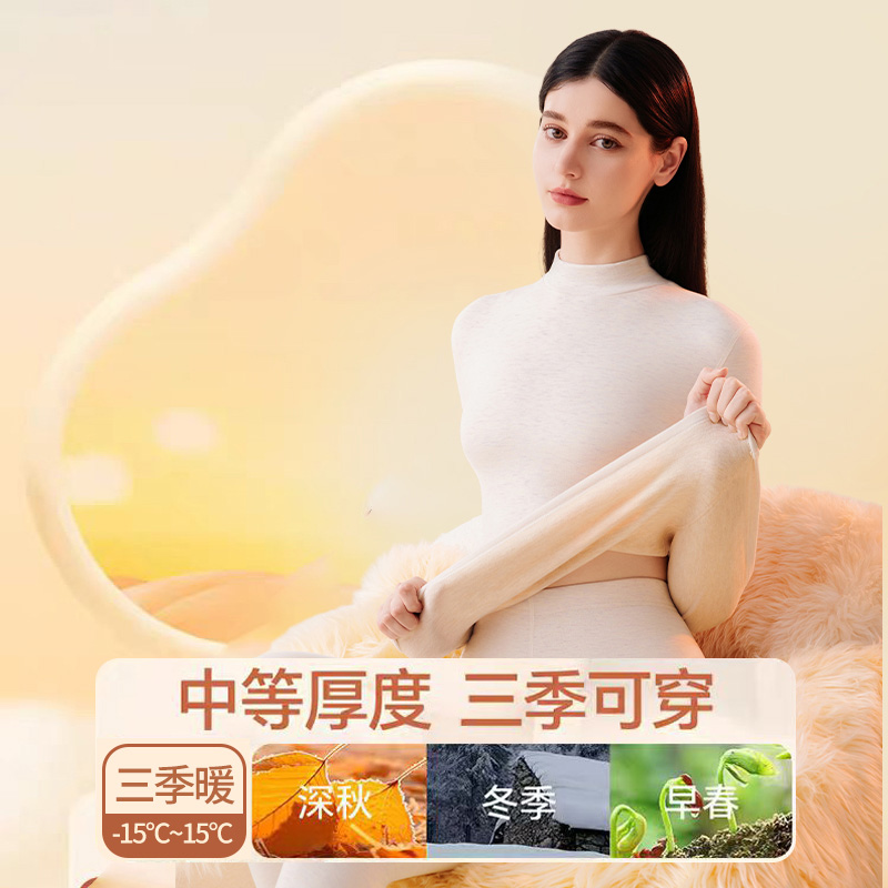 鸭鸭羊绒蚕丝德绒保暖内衣女无痕发热加绒秋衣秋裤 打底上衣冬 套装