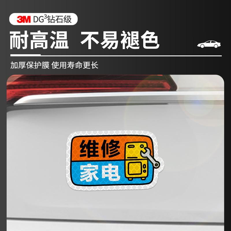 3M个性 饰防水反光车贴 创意家电维修汽车窗贴纸电动车摩托车头盔装