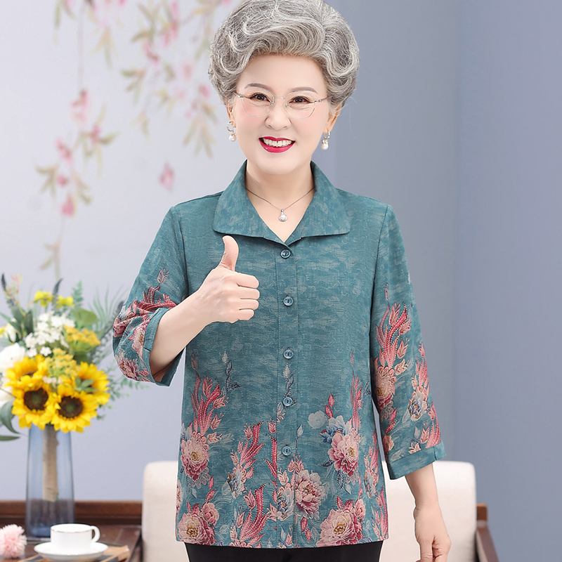 上衣70岁60妈妈 老人衣服老太太春秋薄款 中老年人女夏装 奶奶衬衫