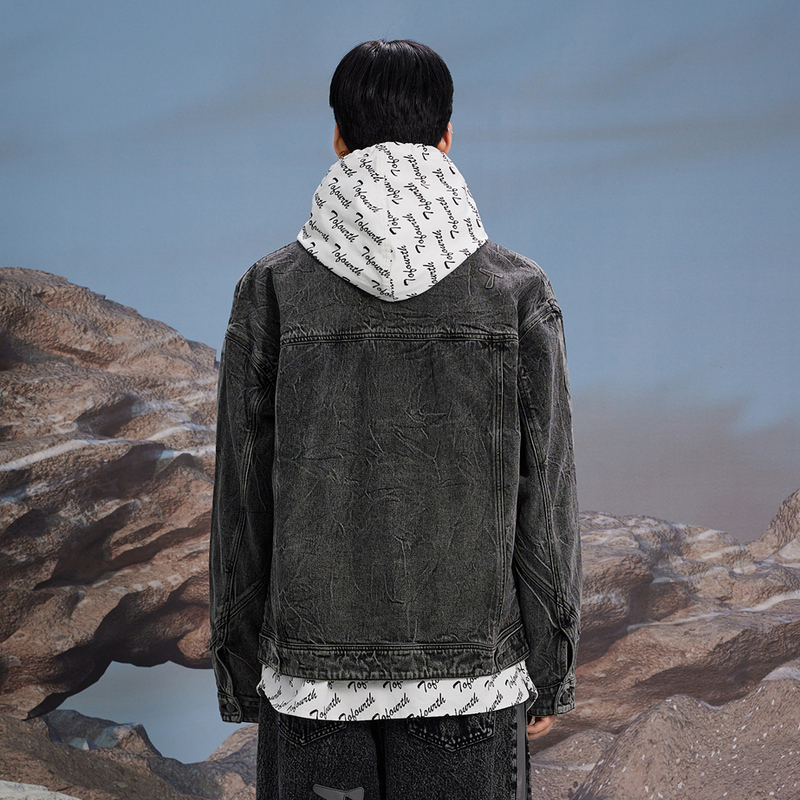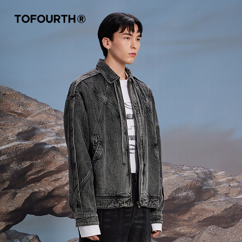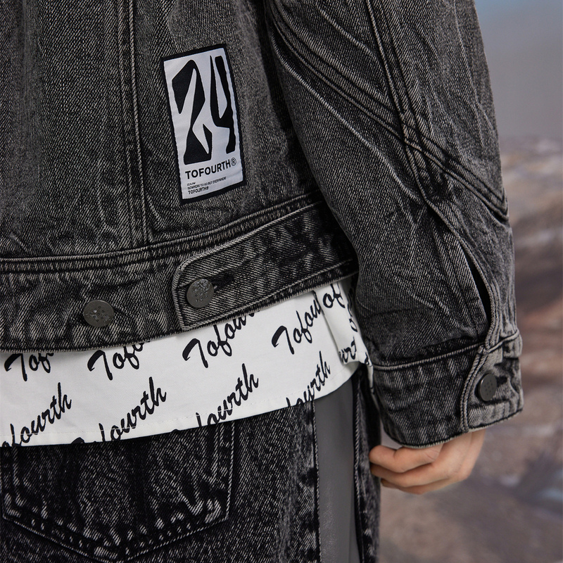 拼接做旧设计感外套宽松百搭男女同款 明星同款 牛仔外套 TOFOURTH