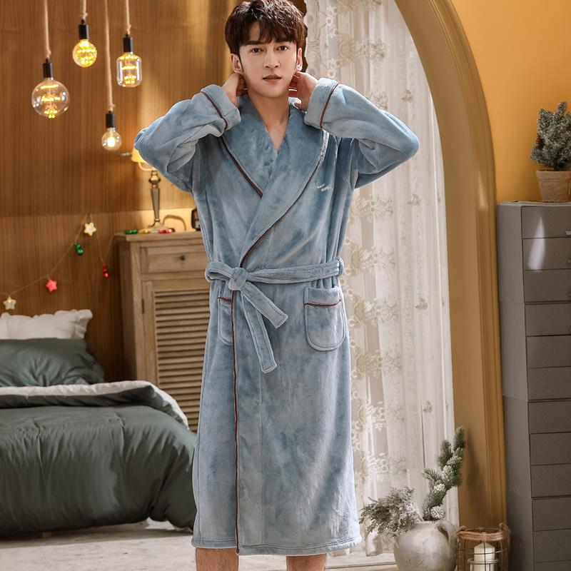 0908h 法兰绒睡袍女加绒睡衣秋冬款 秋冬珊瑚绒加厚浴袍男长款 大码