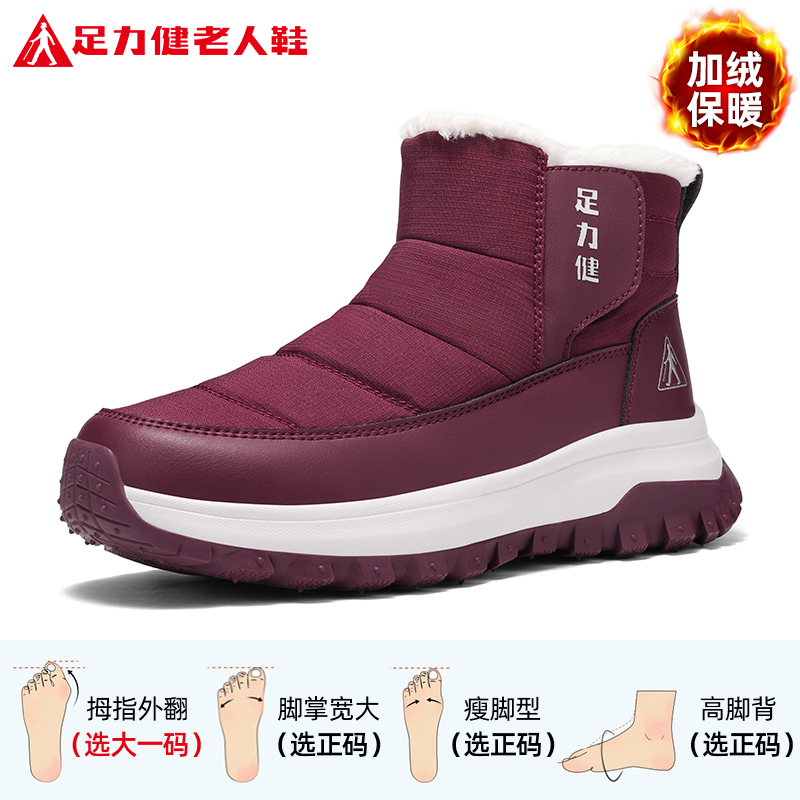 加绒保暖休闲雪地靴女 中年妈妈秋冬季 足力健老人鞋 官方旗舰店正品