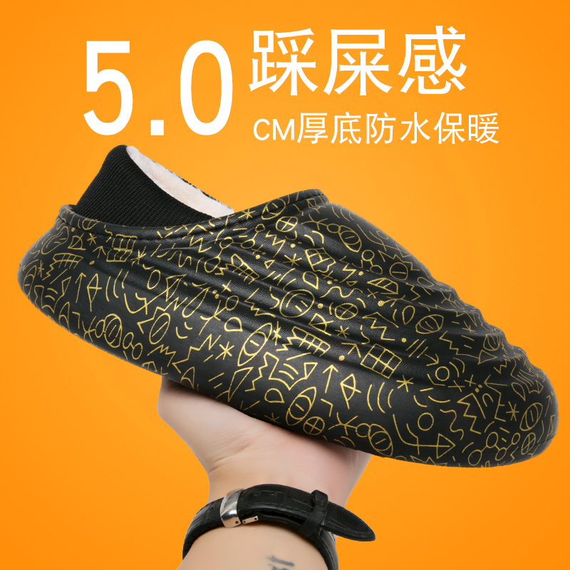 加绒加厚踩屎感厚底防滑休闲居家室内情侣包跟棉鞋 冬季 男士 棉拖鞋
