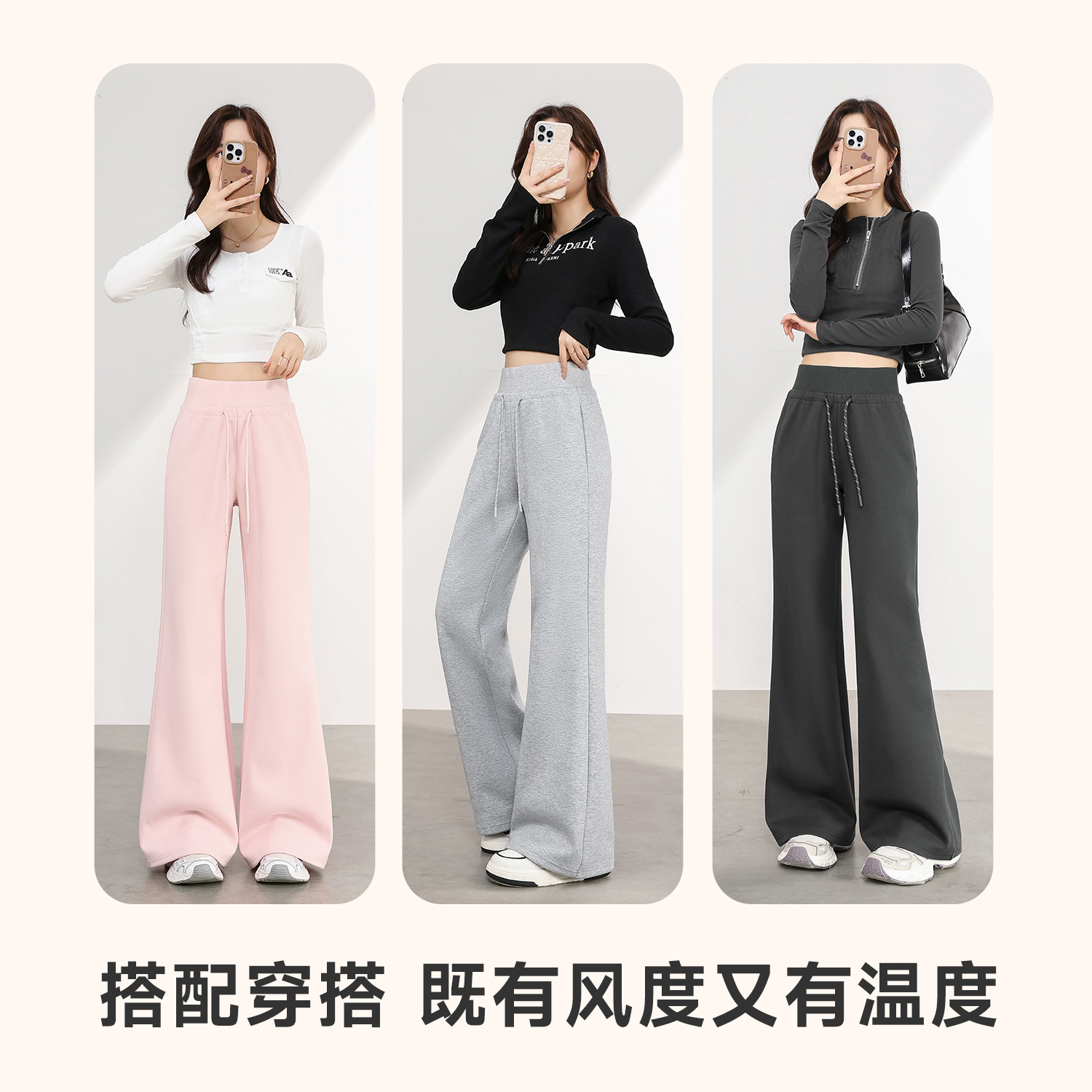 早秋慵懒小个子直筒阔腿裤 新款 女2025秋季 班尼路黑色休闲微喇裤