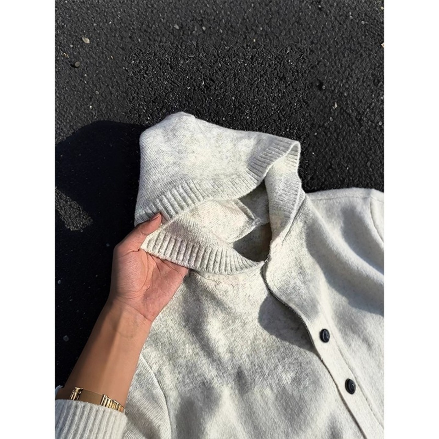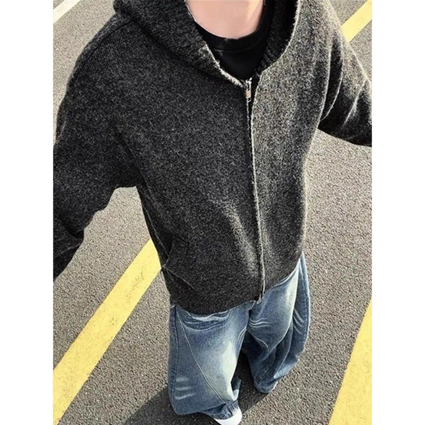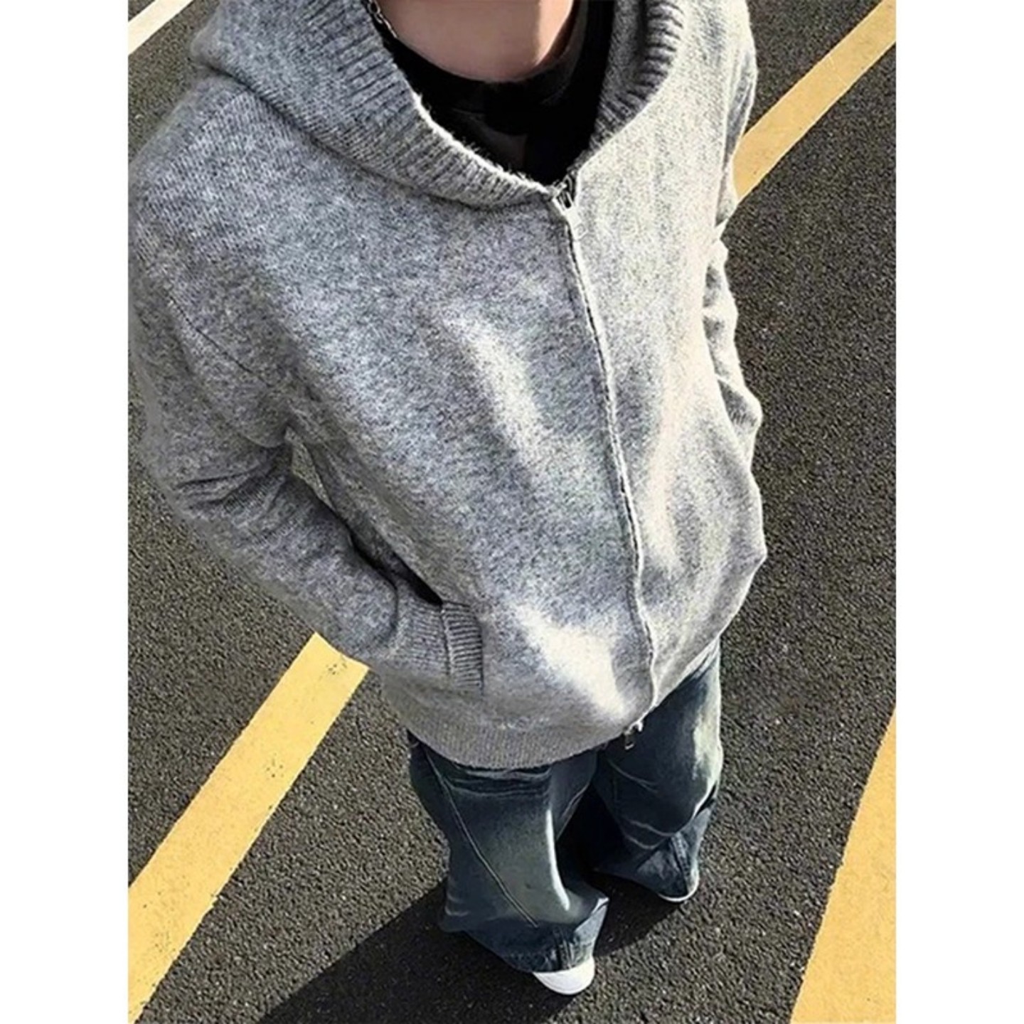 连帽开衫 慵懒高级感针织衫 外套 复古毛衣男秋季 白花灰cleanfit美式