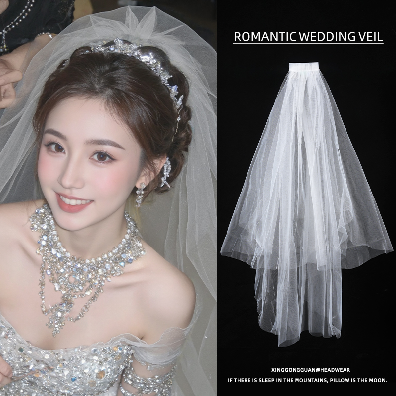 新娘头纱头饰超仙结婚拍照道具短款 森系婚纱头纱领证白色头纱简约