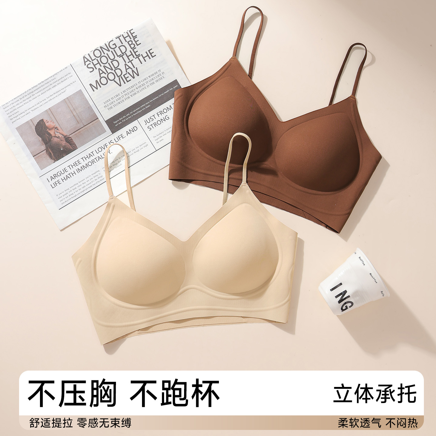 可替换肩带柔润背心文胸V ubras第八代无尺码 香菇双十一