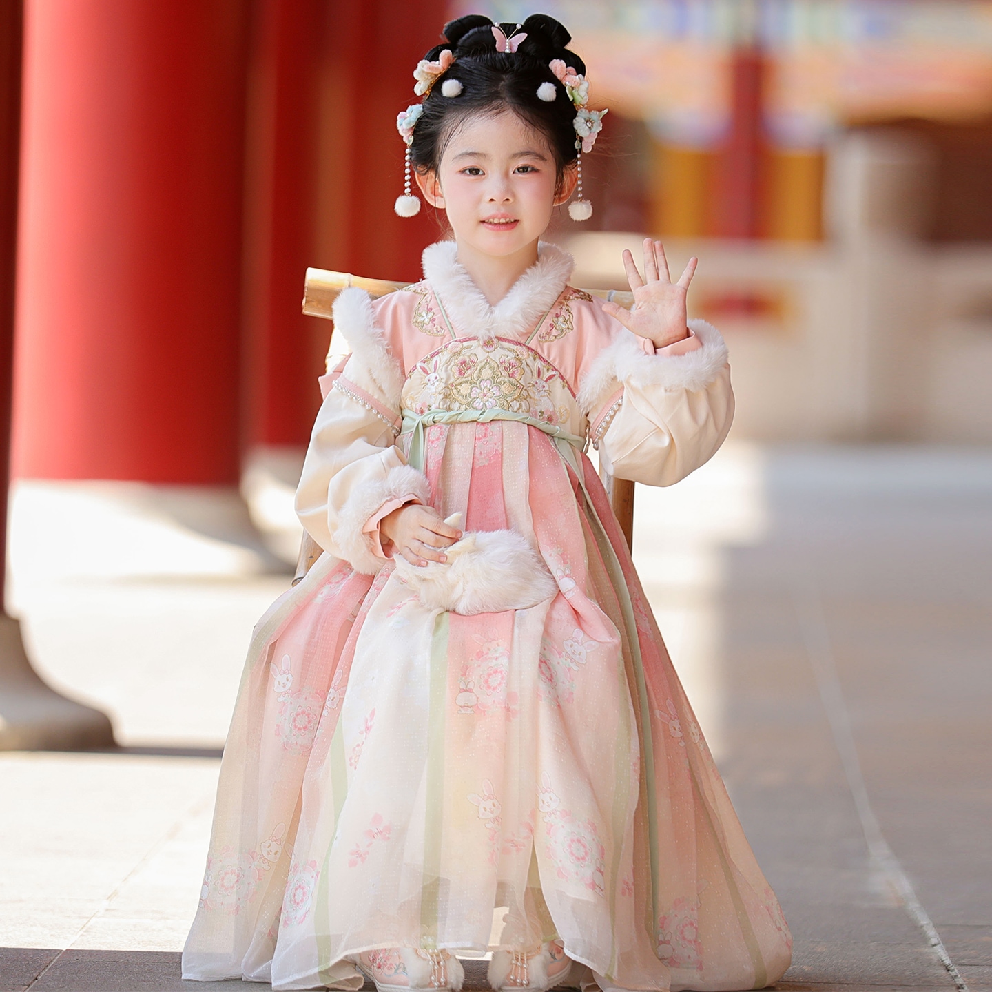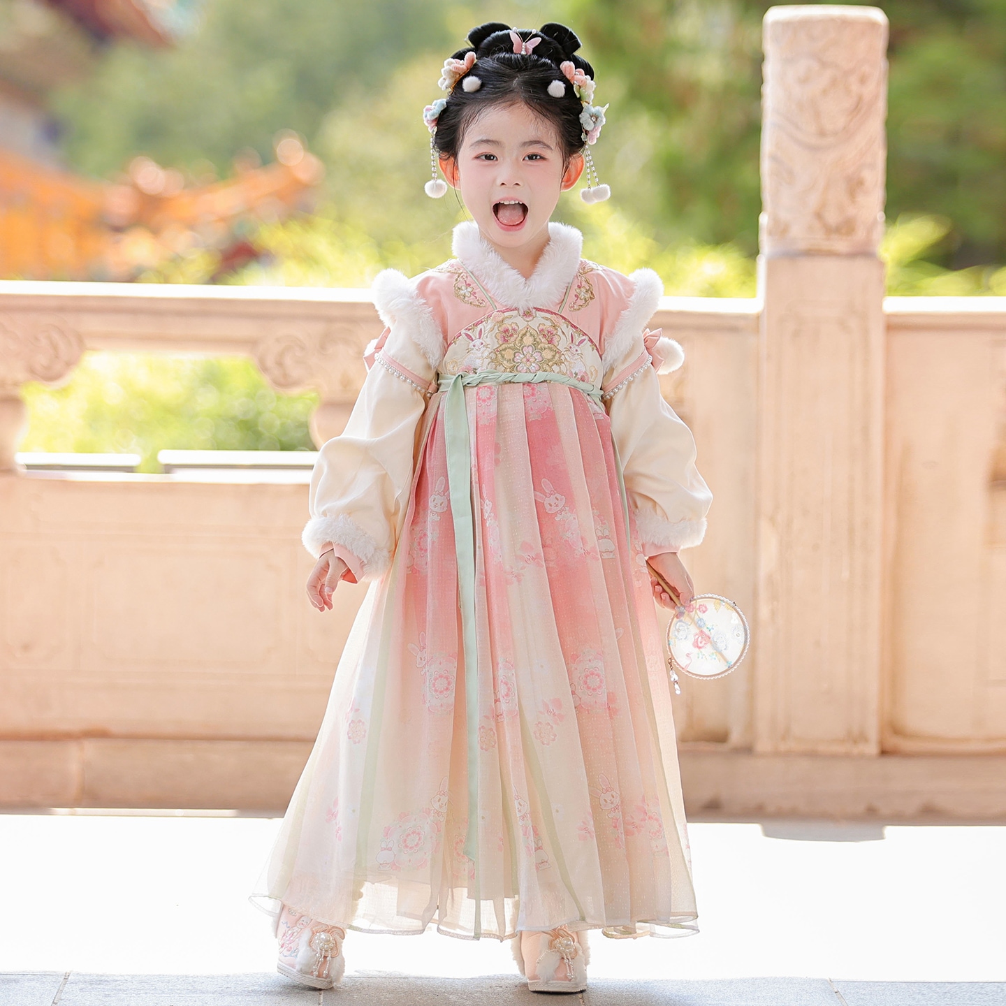 公主裙儿童古风冬装 古装 加绒 连衣裙中国风2025新款 汉服女童秋冬季