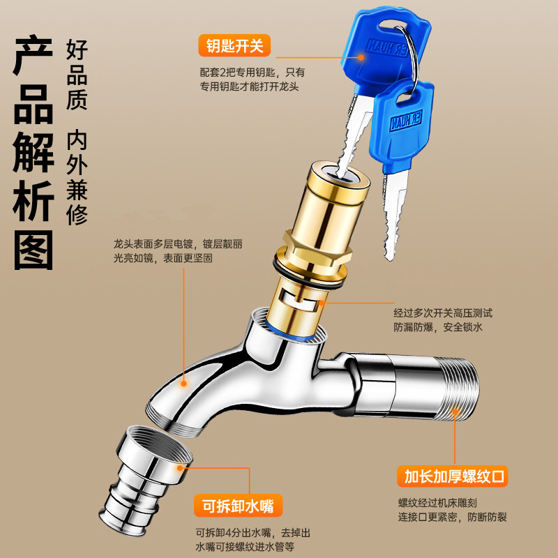 洗衣机水龙头家用拖把池快开加长4分通用单冷多功能户外防盗龙头
