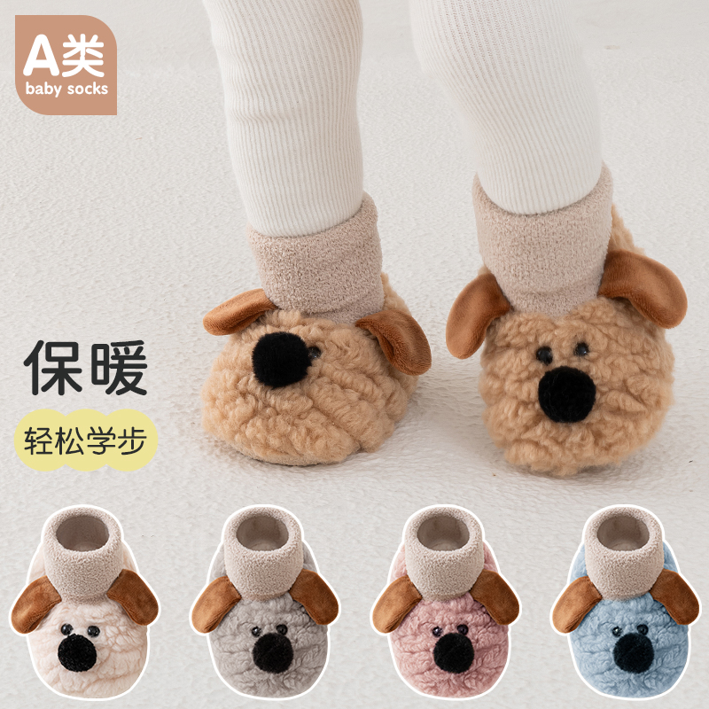 袜套室内婴幼儿男宝女宝 加厚保暖防滑地板软底鞋 宝宝学步鞋 秋冬季