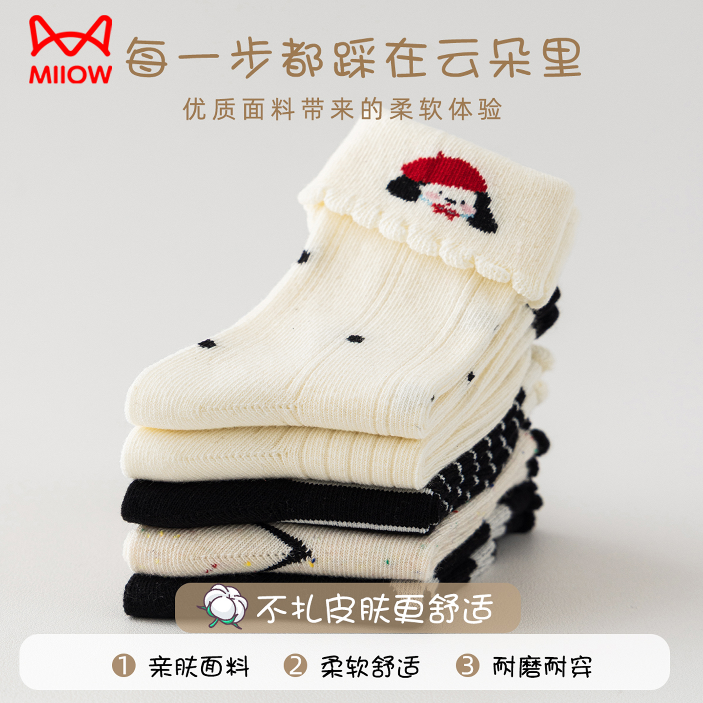 猫人女童中筒袜春秋款 卡通儿童袜子a类吸汗防臭长袜女孩花边棉袜