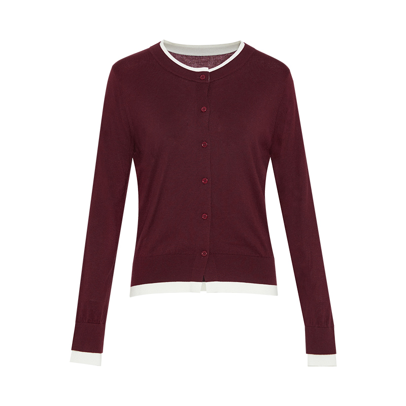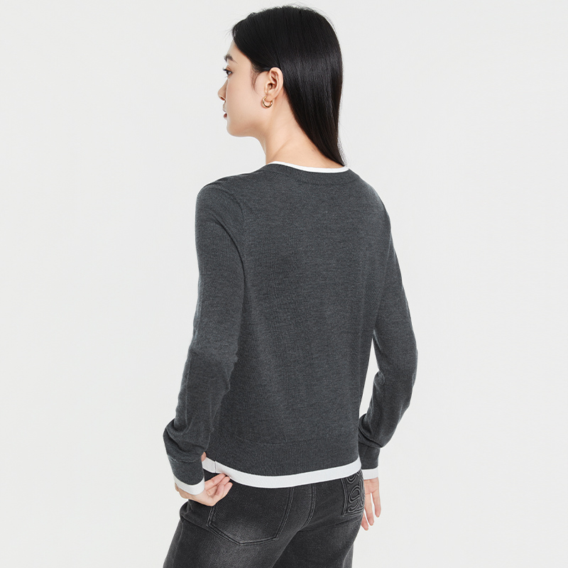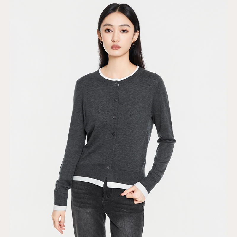 毛衣开衫 傲丝度撞色假两件针织衫 小个子圆领长袖 新款 女2025冬季
