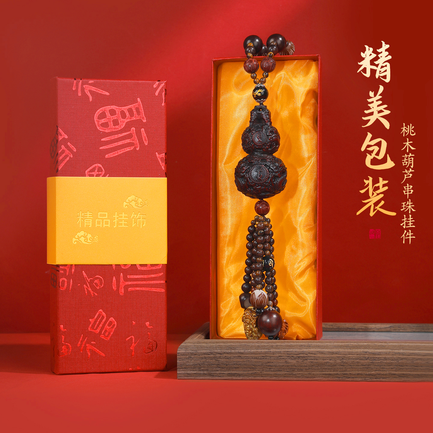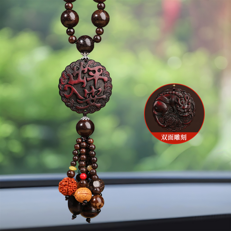 保平安车载挂件桃木葫芦菩提车挂后视镜吊坠高端大气上档次新款 男