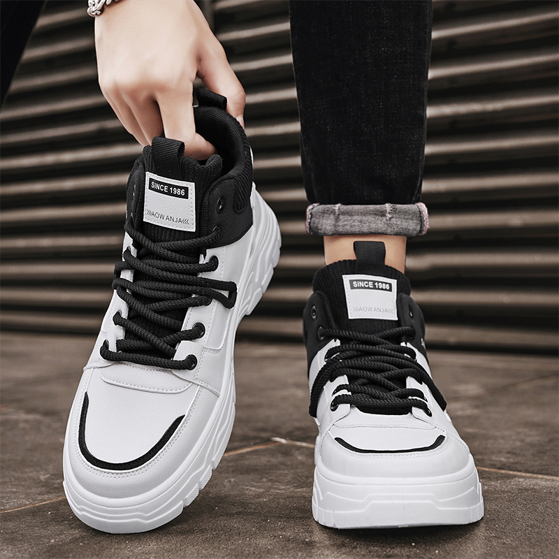百搭休闲皮面防水青少年跑步运动篮球增高老爹鞋 森马高帮男鞋 秋季