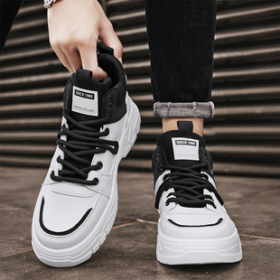 男鞋 子学生运动鞋 新款 皮面鞋 秋冬高帮休闲鞋 电池熊猫鸿星尔克板鞋