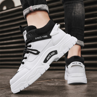 靴子 真皮防水厚底增高工装 森马马丁靴男秋季 高帮百搭休闲白色板鞋