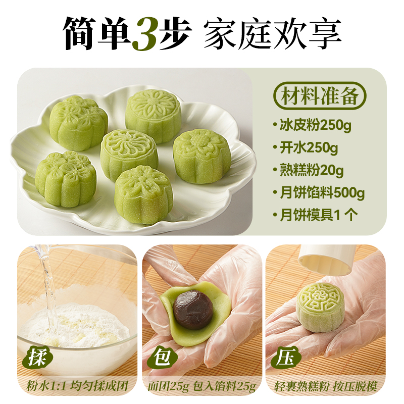 冰皮月饼预拌粉茉莉龙井风味diy全套餐自制材料免蒸制作家用团建