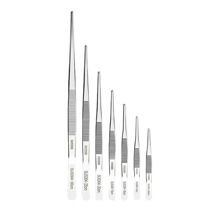 工厂直销带齿圆头加长加厚防滑造型工具25cm304不锈钢镊子