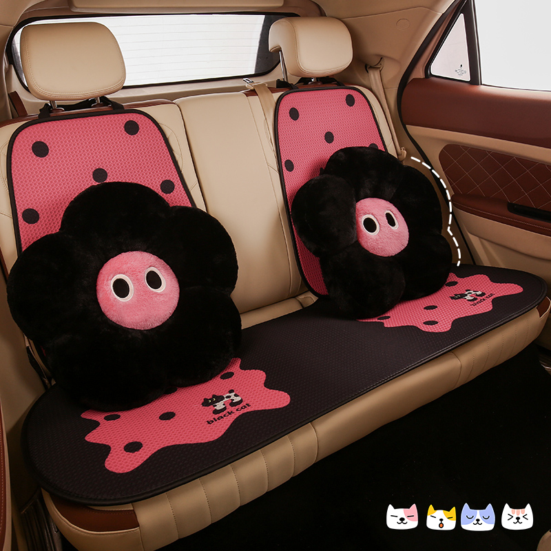 汽车坐垫四季 凉垫冰丝座垫女士 通用后排单片通风座椅套波点猫夏季