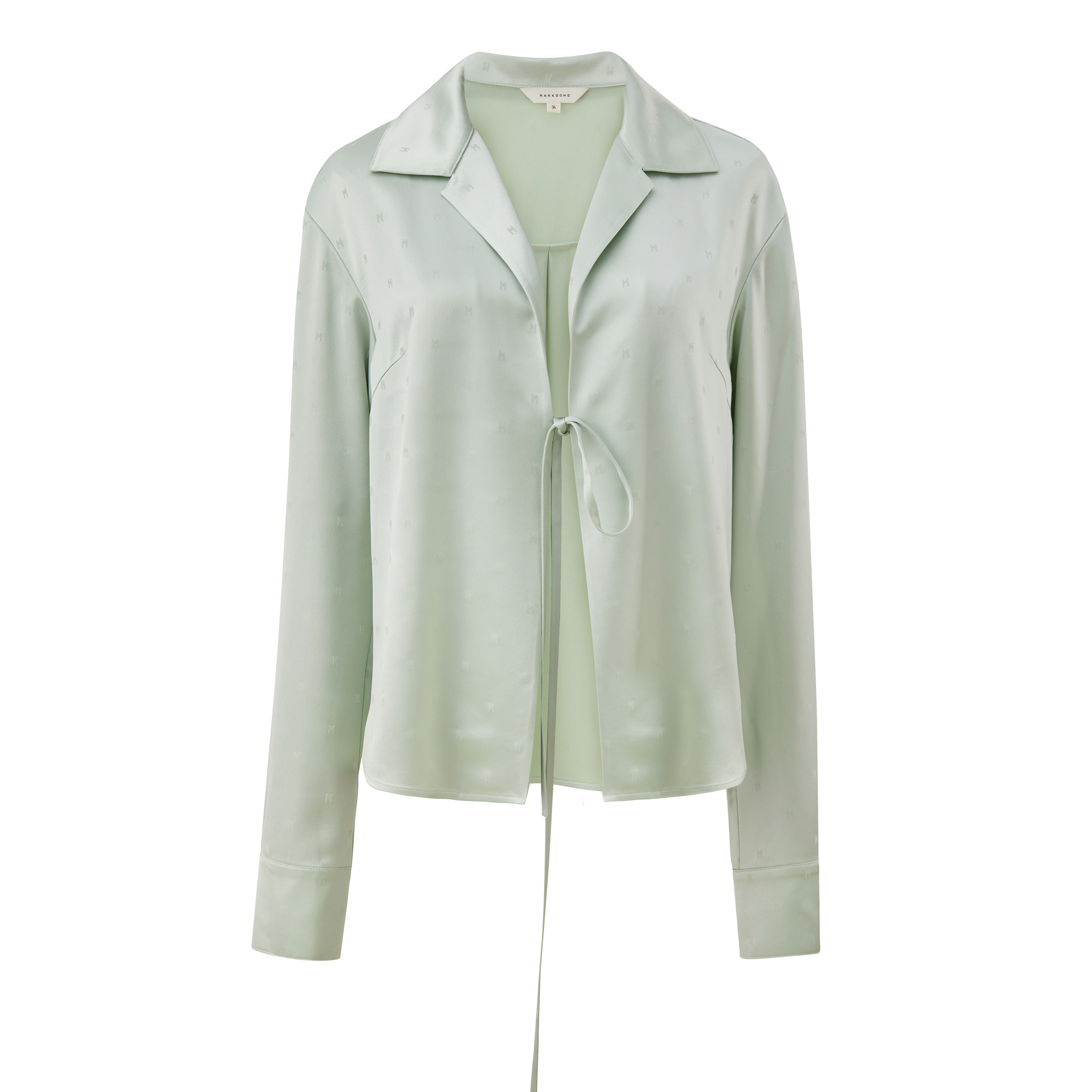 薄荷绿植绒系带衬衫 MARKGONG早秋新款 植绒半裙百搭 清货折米34