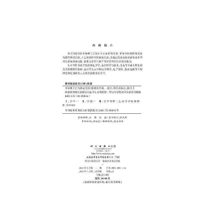陈晖 谢德英 黄展云 陈军 社 全新正版 科学出版 半导体工艺与测试实验