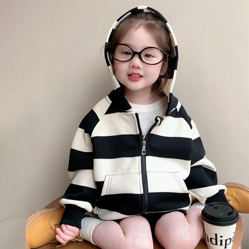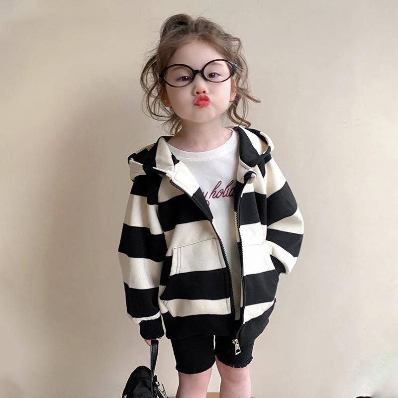 连帽条纹上衣宝宝春装 韩版 时髦洋气 儿童春季 女童外套春秋2025新款