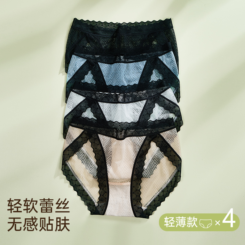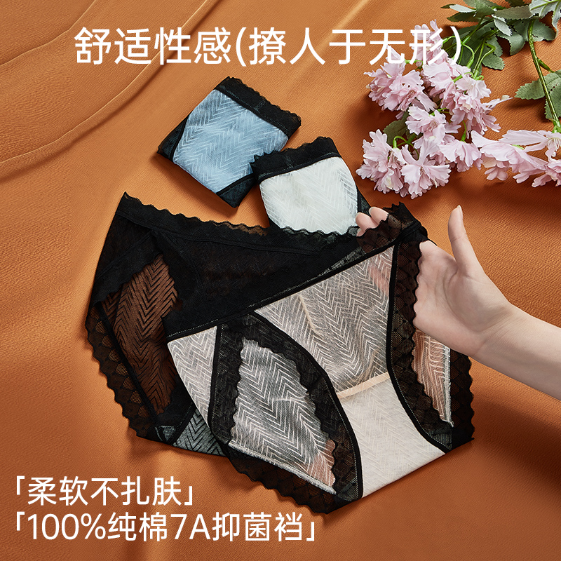 轻薄透气 中腰蕾丝内裤 玛伦萨无痕内裤 女纯棉底裆7A抑菌性感法式