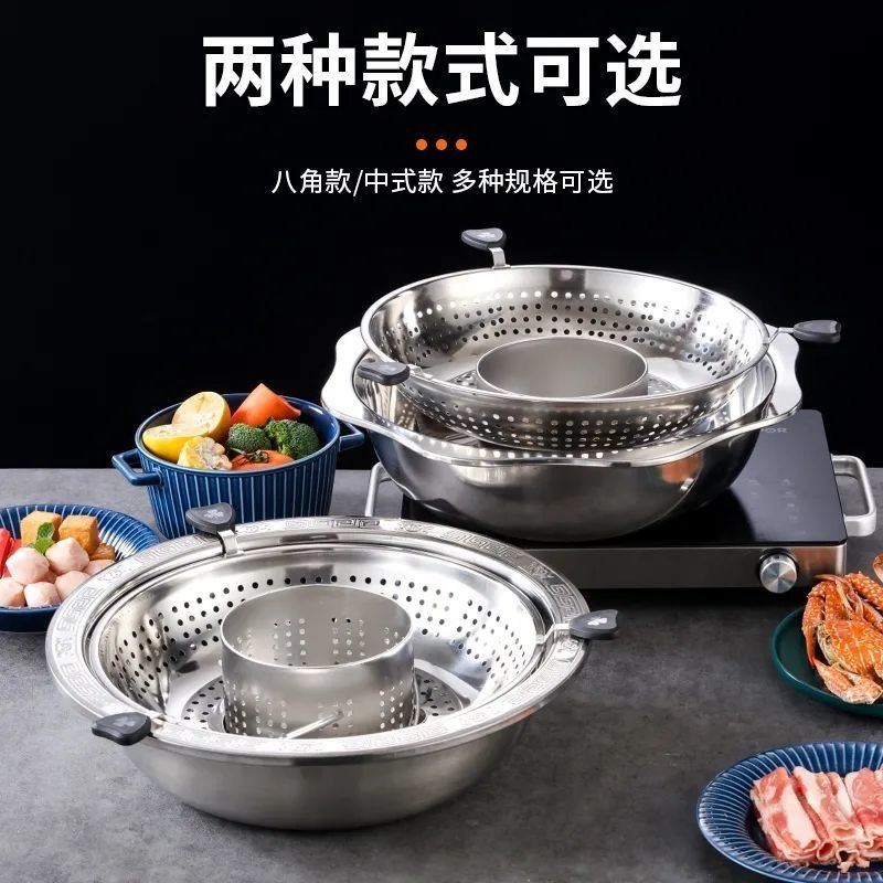旋转式 可升降火锅锅家用网红不锈钢火锅盆子母鸳鸯锅电磁炉专用锅
